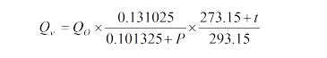 Qvmin=QN×0.101325×(273.15+t)/293.15/(P +0.1)
