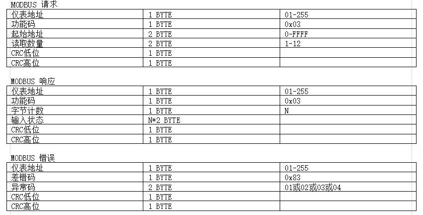 2.1 本儀表使用了MODBUS協議中1條指令: